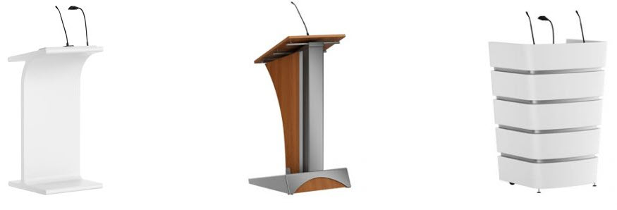 A desktop pulpit, tabletop lectern is a good solution for a conference room or meeting room where presentations occasionally take place. A standing podium can be inconvenient when it has to be moved in and out of a room from day to day unless it is on casters.
